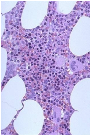 See a bunch of maturing granulocytes, with almost no fat at all.