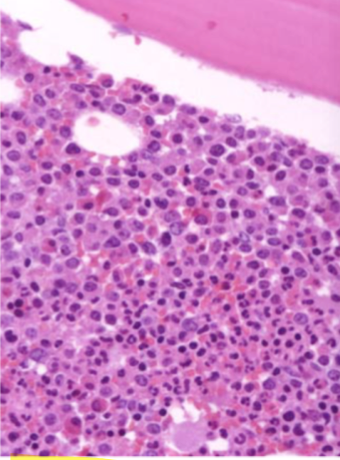 This occurs when the disease is left untreated, and cells gain additional genomic hits. This results in the formation of an acute leukemia, characterized by constitutional symptoms, complications of cytopenias, extramedullary disease, etc.