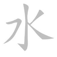 In a vertically-symmetrical character like 水, which stroke comes first?