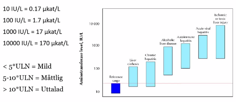 Hur ser stegringen av ALAT/ASAT ut beroende på sjukdom?