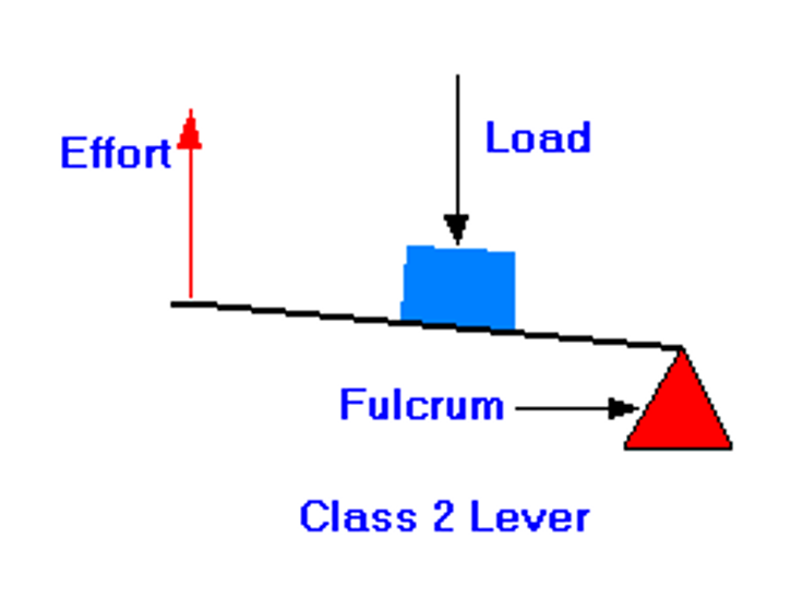 - Effort = Tricep Brachii provides the effort to extend at the elbow - Fulcrum = Elbow Joint - Load = Javelin
