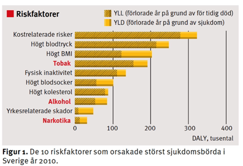 Riskfaktorer som orsakar störst sjukdomsbörda i Sverige, som kan ses ligger vad först?