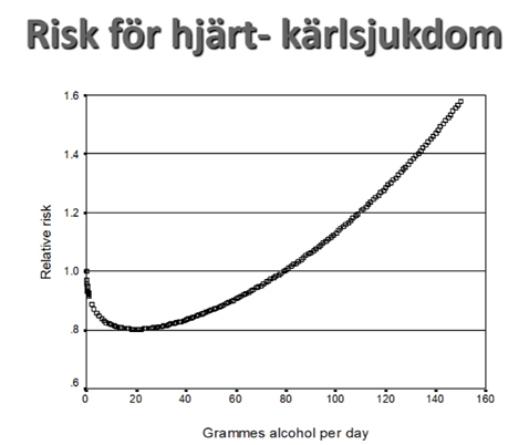 Risken minskar vid moderat konsumtion men ökar sedan snabbt igen