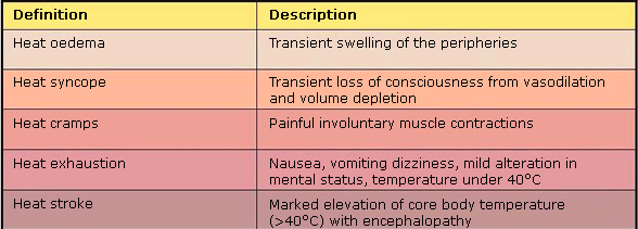What are the 5 types of heat illness?