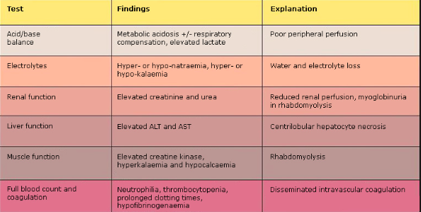 What biochemical abnormalities can be seen in heat stroke? (6)