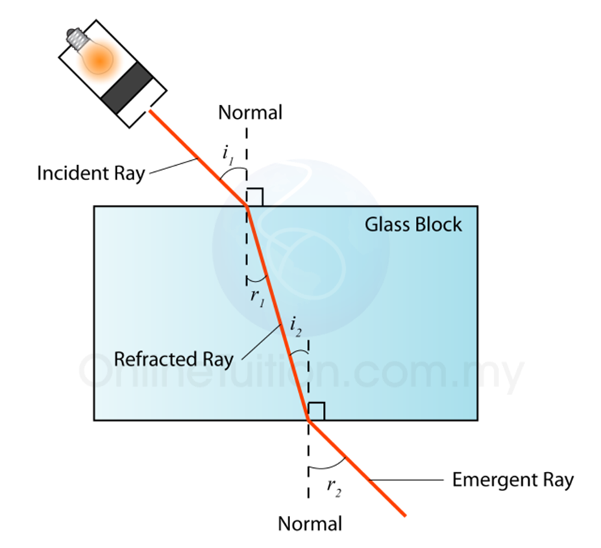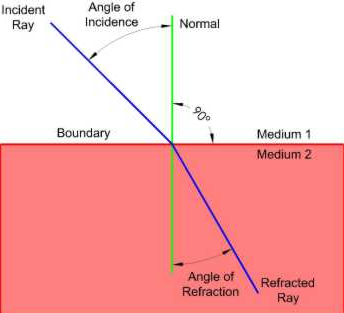 A line that is 90 degrees to the surface of a substance that is interacting with light
