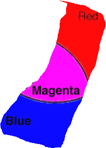 It absorbs the 2 other primary colours but transmits the primary colour of the filter