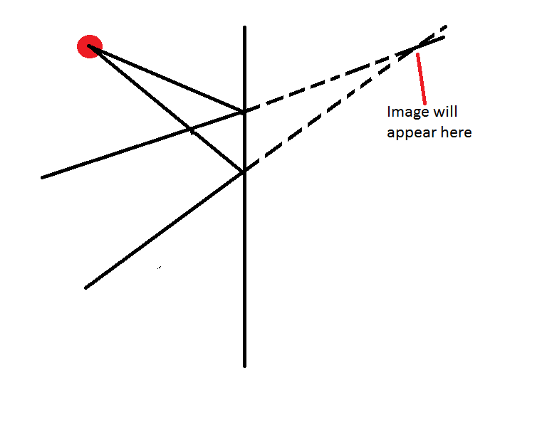 Complete this ray diagram to show where the image will appear