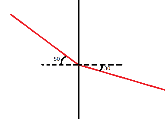 Draw a ray diagram to show the refraction of light at a boundary. The angle of incidence is 50o and the angle of refraction is 30o