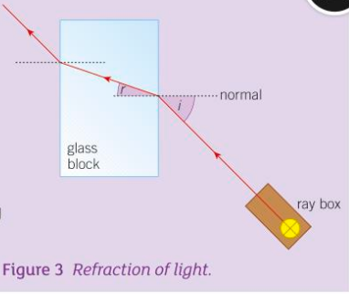 When investigating refraction, explain how to meausre the angle of incidence or angle of refraction