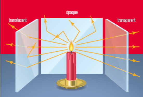Opaque - materials that totally block the light and cast shadows (books, desk)