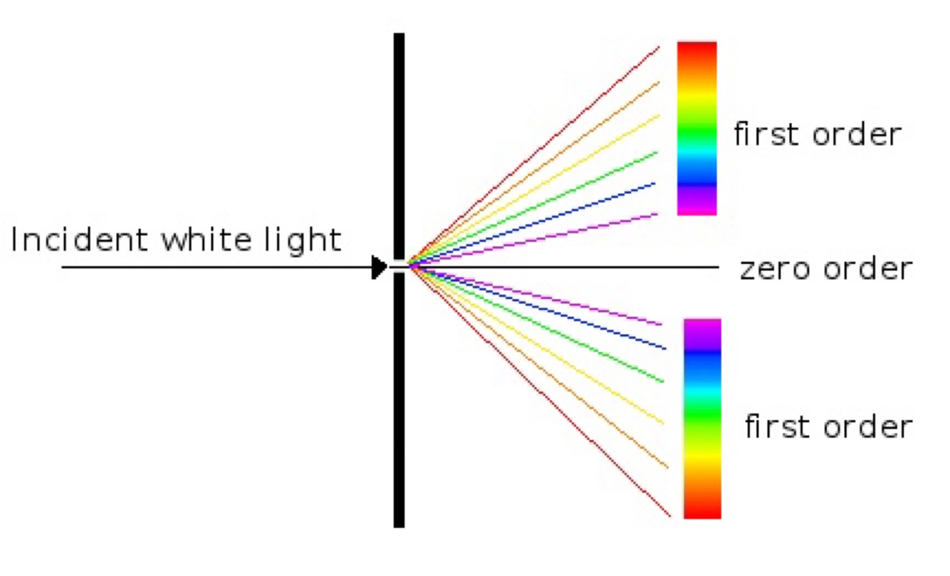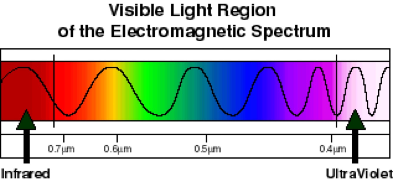 -(low energy) red, orange, yellow, green, blue, violet (high energy)