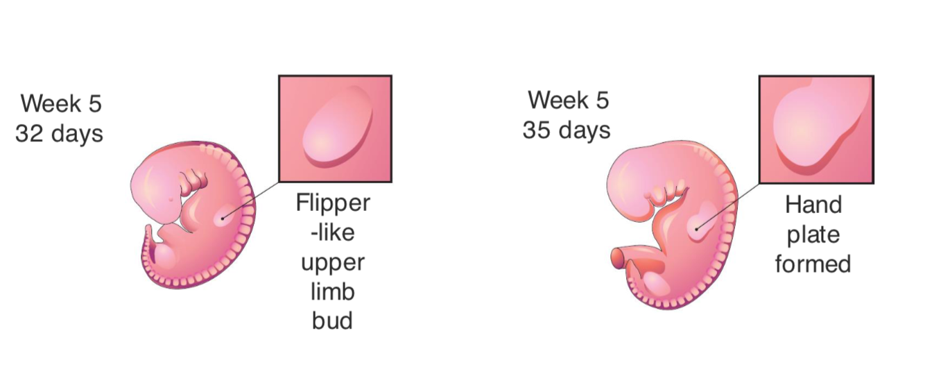 distinct (3)_____ present in week 5, gradually disappears as lower limbs enlarge