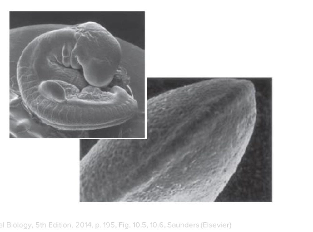 distinct tail segment present in week 5, gradually disappears as _____ enlarge