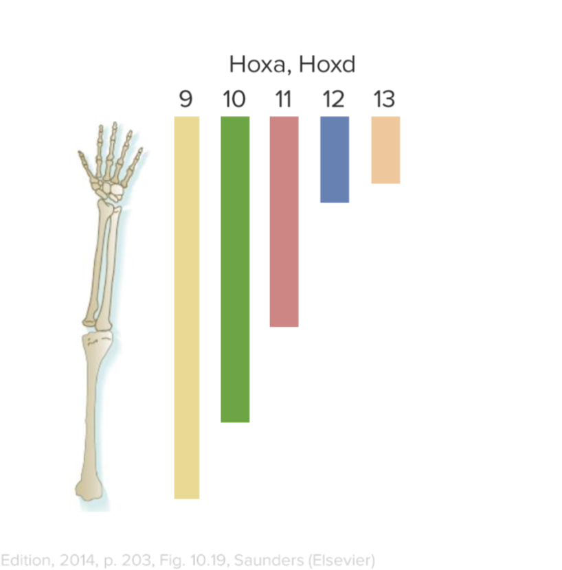 → As the bud extends more Hox family genes are expressed distally, signaling for ___