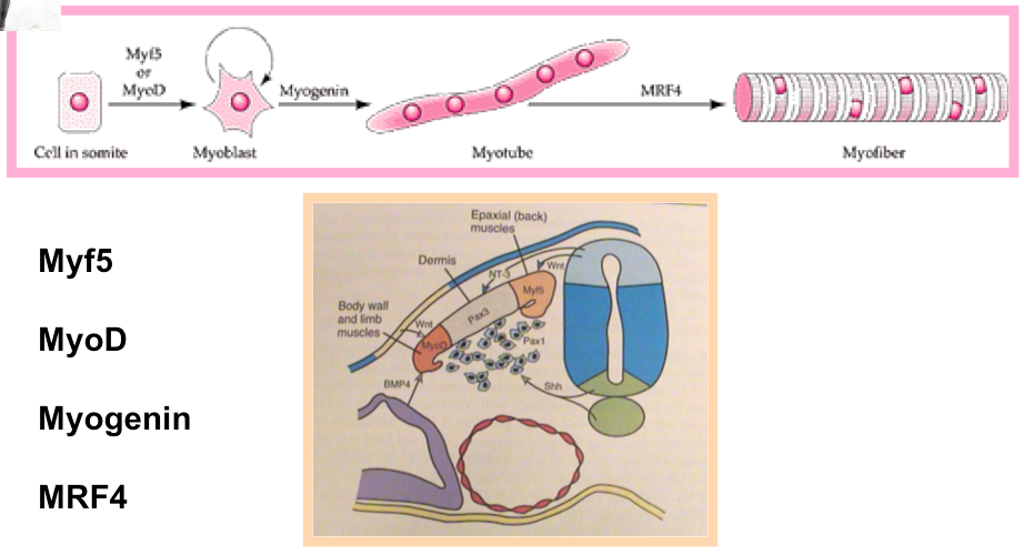 MYOD IS EXPRESSED IN DORSALATERAL SOMITE – LATER BECOMES MUSCLE OF BODY WALL AND LIMB