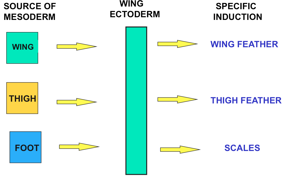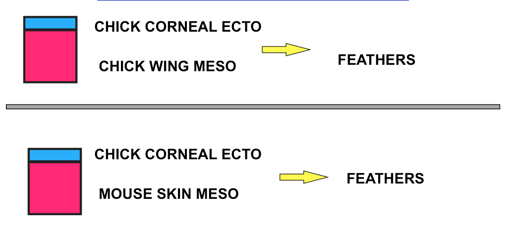 THE MESENCHYME CAN INSTRUCT THE ECTODERM AND TELL IT WHAT SET OF GENES TO TURN ON BUT THE MESENCHYME CAN COMPLY ONLY WITH WHAT IS IN IT GENOME!