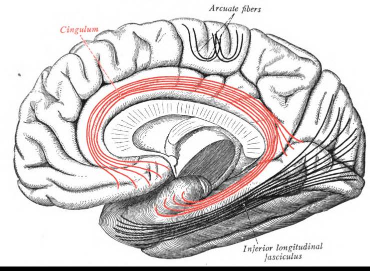 Where is the cingulate gyrus in the brain? [1]