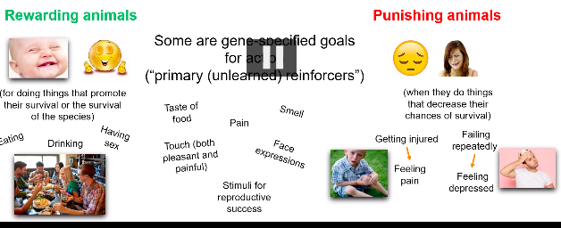 Gene specified goals for action (for rewarding or punishment)