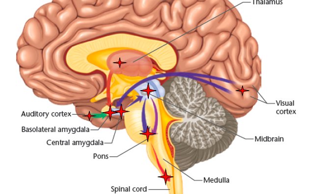 Information is relayed to the nucleus in the pons responsible for the startle reflex