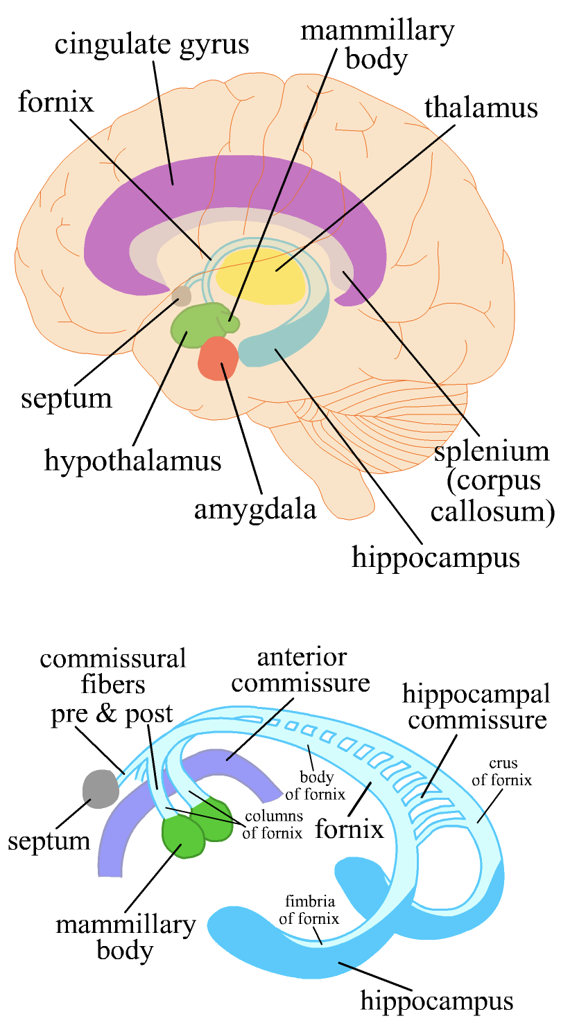 Added hippocampus, anterior nucleus of thalamus, most of hypothalamus, and mammillary bodies in addition to limbic structures.