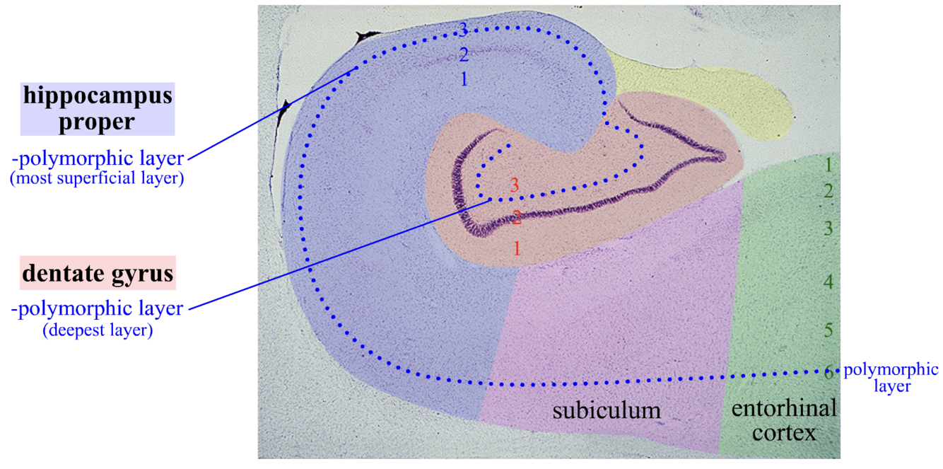 Hippocampus proper and dentate gyrus (archicortex) contains 3 layers.
