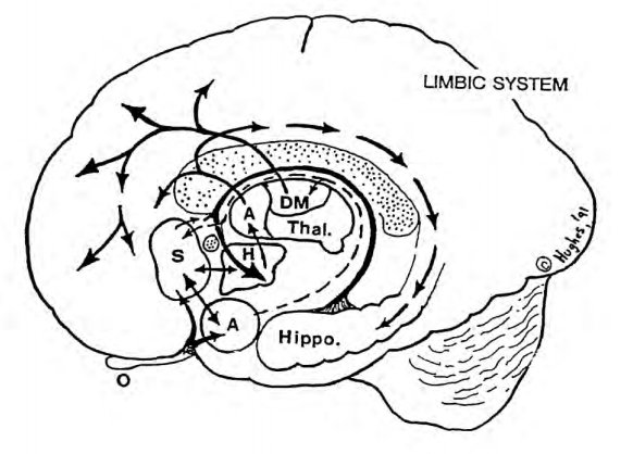 Interconnection of these structures (see attached) is Papez ciurcuit. Damage to these structures leads to issues with emotion and behavior. Do not have to memorize each part of the circuit but be familiar with Papez name