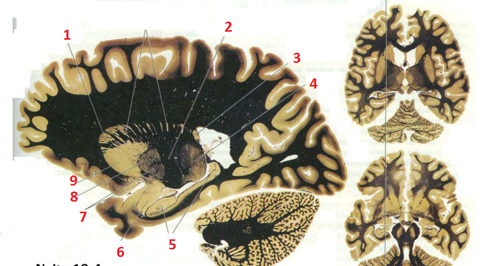 Identify the numbered structures.