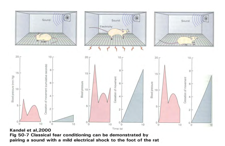If start to present sound over and over with no shock (see attached pic), the mouse learns that sound does not mean shock. This is called habituation. Cortical structures are required for habituation. This is not forgetting but is learning of a new rule. Habituation inhibits the initial response (instilled from fear conditioning) to control the behavior.