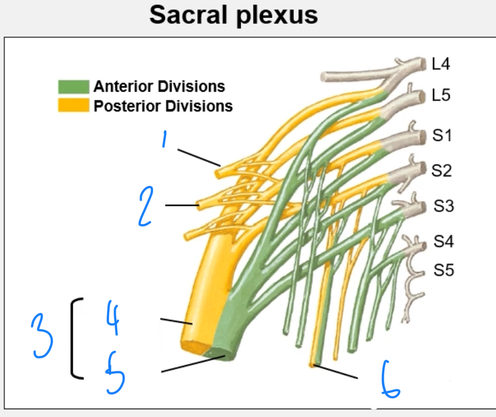 Name nerves 1-6 on this diagram of the sacral plexus?