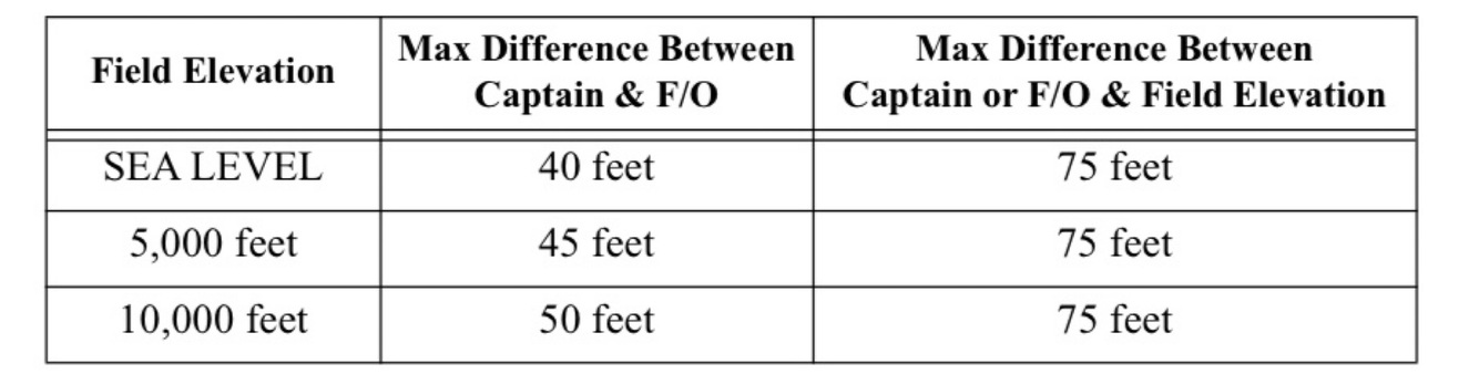 Between captain and F/O difference Sea level, up to 5000ft and up 10,000 ft ?