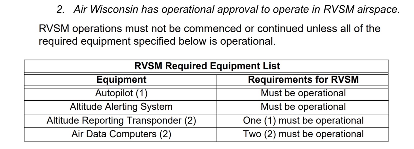 RVSM Required Equipment List.