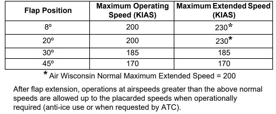 FLAPS OPERATING / EXTENDED SPEEDS
