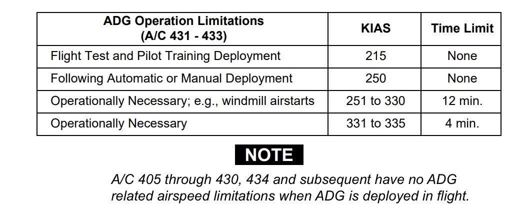 MAXIMUM AIRSPEED FOR ADG OPERATION