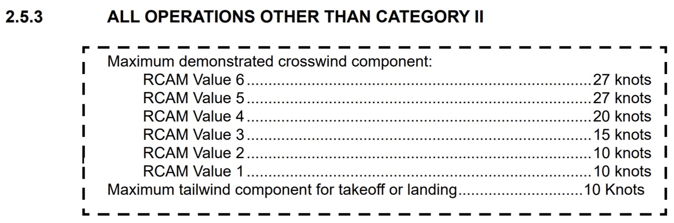 Maximum demonstrated crosswind component: