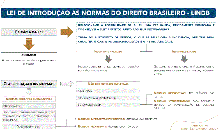Por sua vez, a eficácia da Lei está relacionada à possibilidade de a lei, uma vez válida, devidamente publicada e vigente, vir a surtir efeitos junto aos seus destinatários. Nesse sentido, fala-se em eficácia da norma jurídica quando ela está completamente apta a regular situações e a produzir efeitos práticos junto aos seus destinatários.