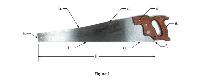 Name the parts of the handsaw shown in Figure 1.
