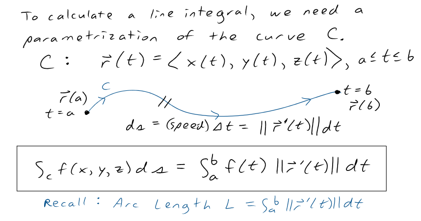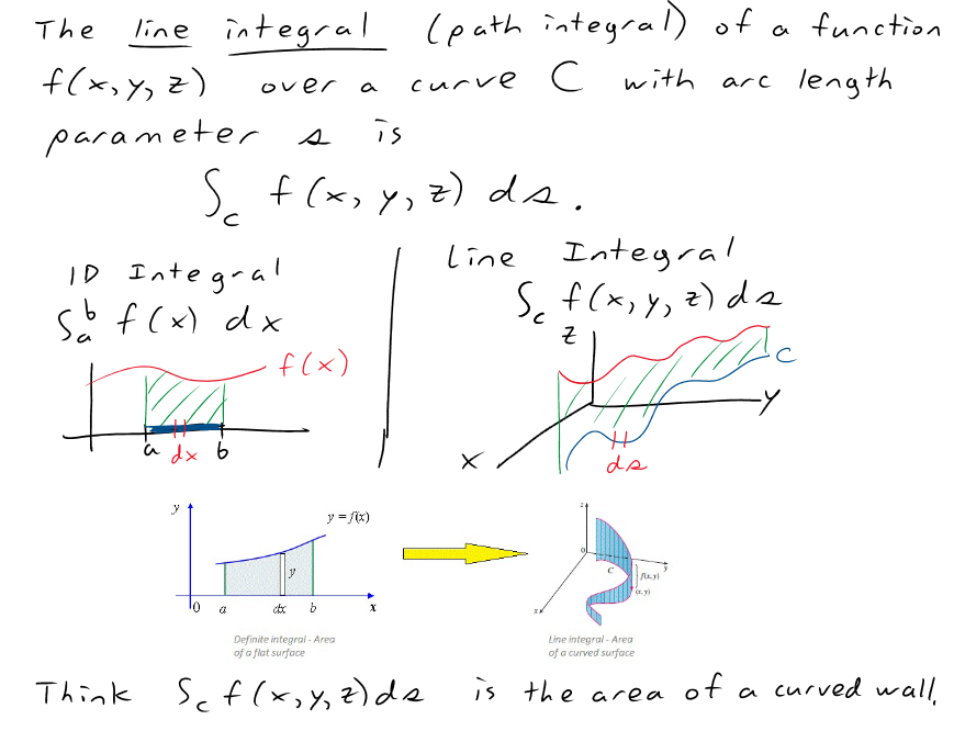 Fill in the blank: The line integral of a function f along C is denoted as ______.