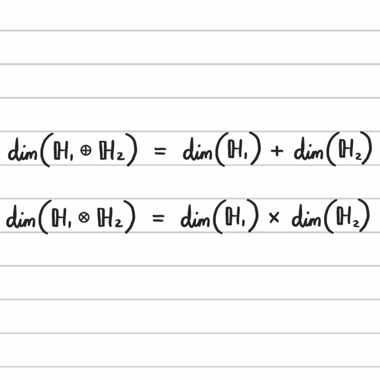 What are the dimensionality of Hilbert spaces under tensor-sums and tensor-products.