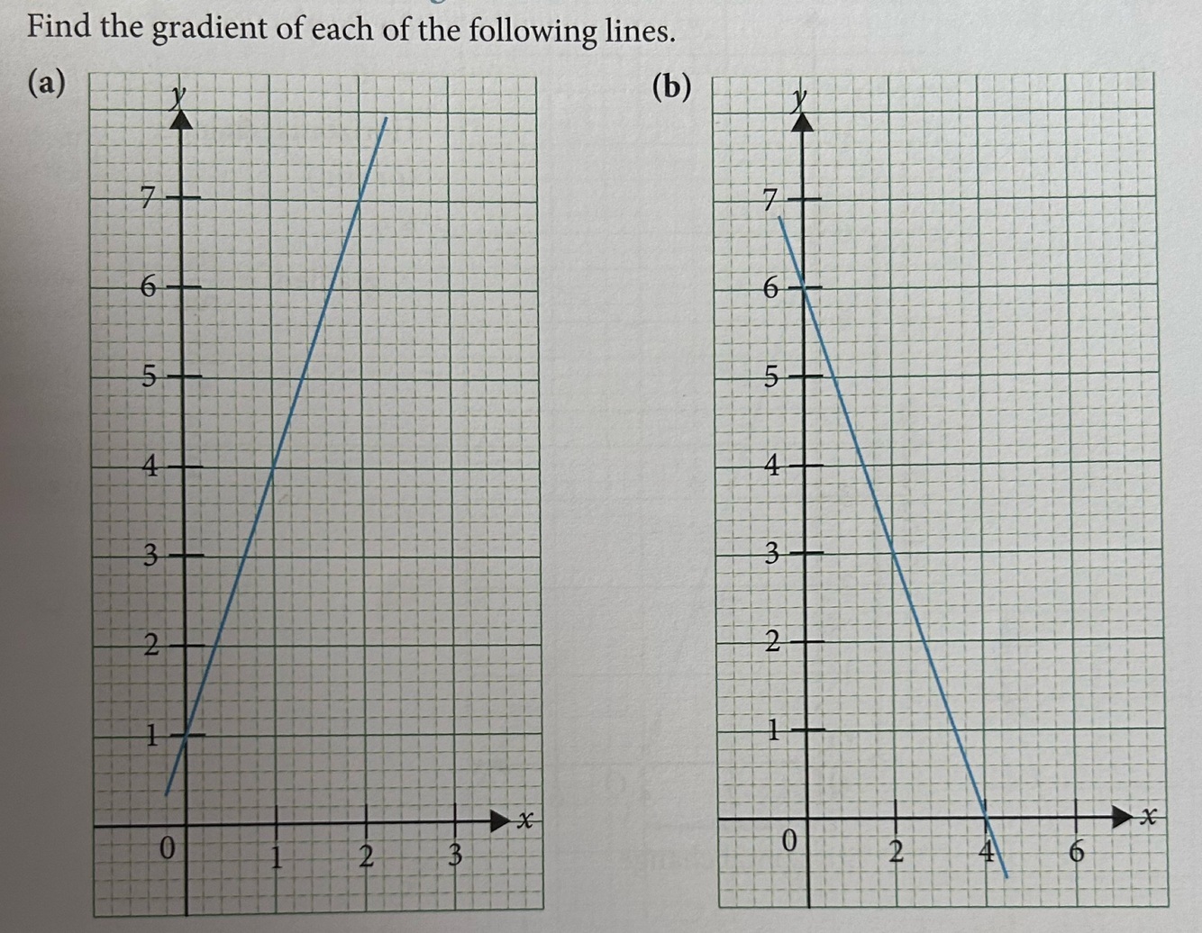 (b) A line has gradient -3 and y-intercept 4. State its equation.