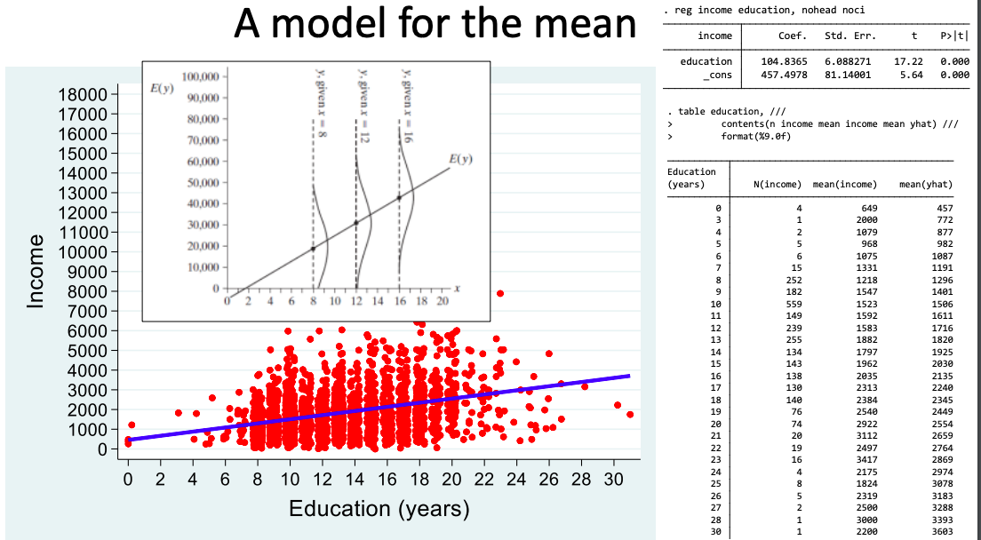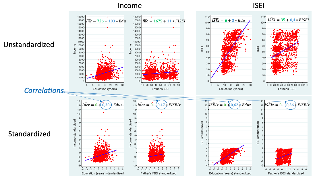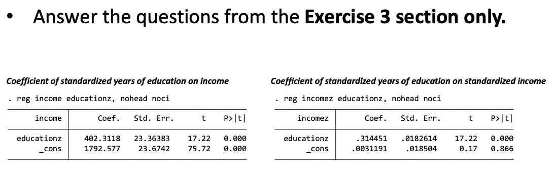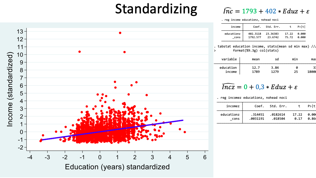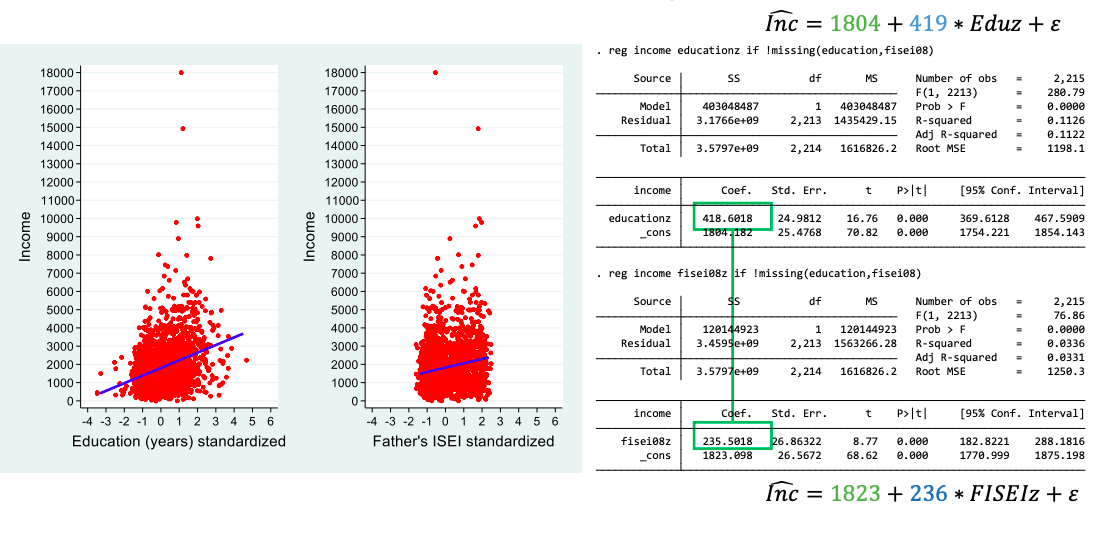 2) For every 1-SD of education, mean of income rises by 0,3 SD of mean income