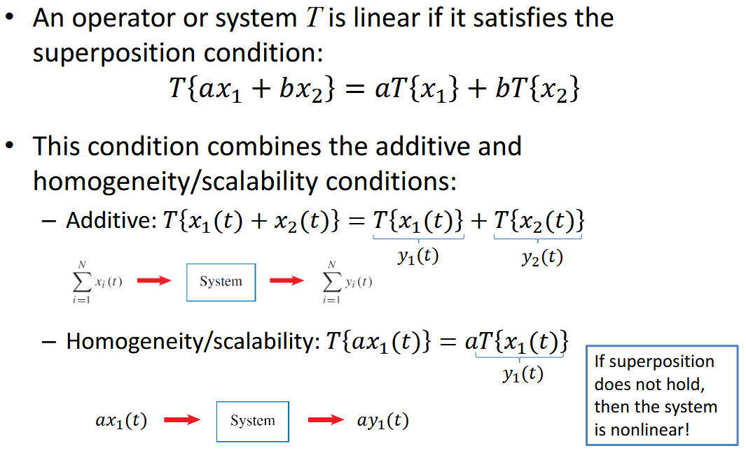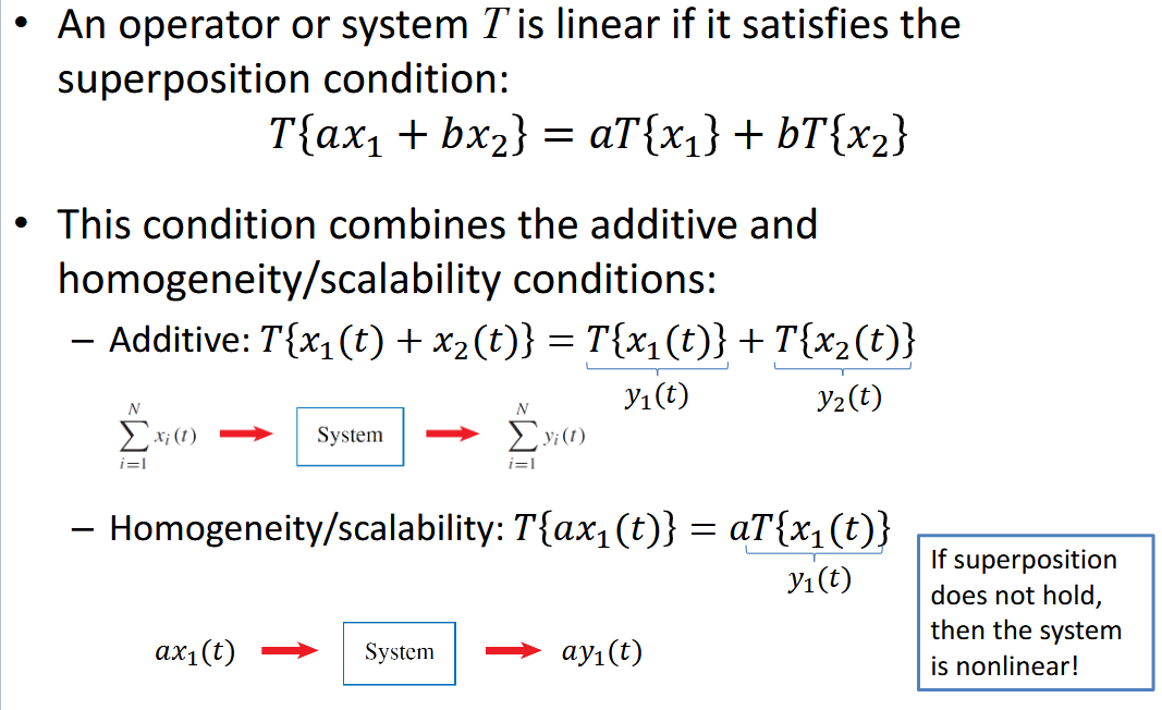 The principle that T(ax1 + bx2) = aT(x1) + bT(x2).