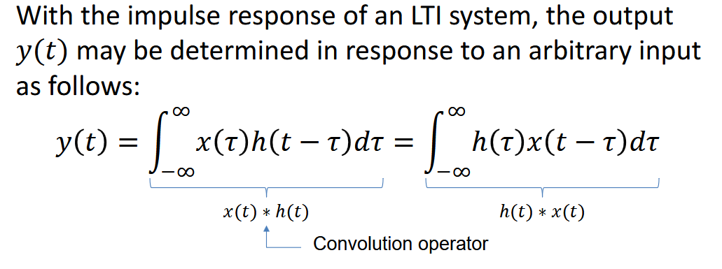 y(t) = ∫(−∞ to ∞) x(τ)h(t − τ)dτ.