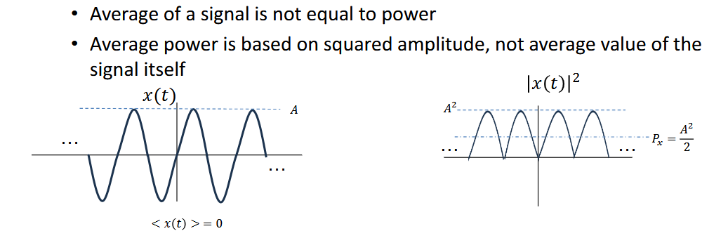 It is based on squared amplitude, not the average value of the signal itself.