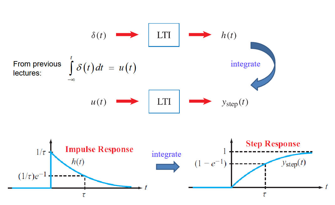 The step response can be derived from the impulse response through integration.