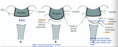 and cement liners (200-1000um), used for pulpal medication and permal protection)