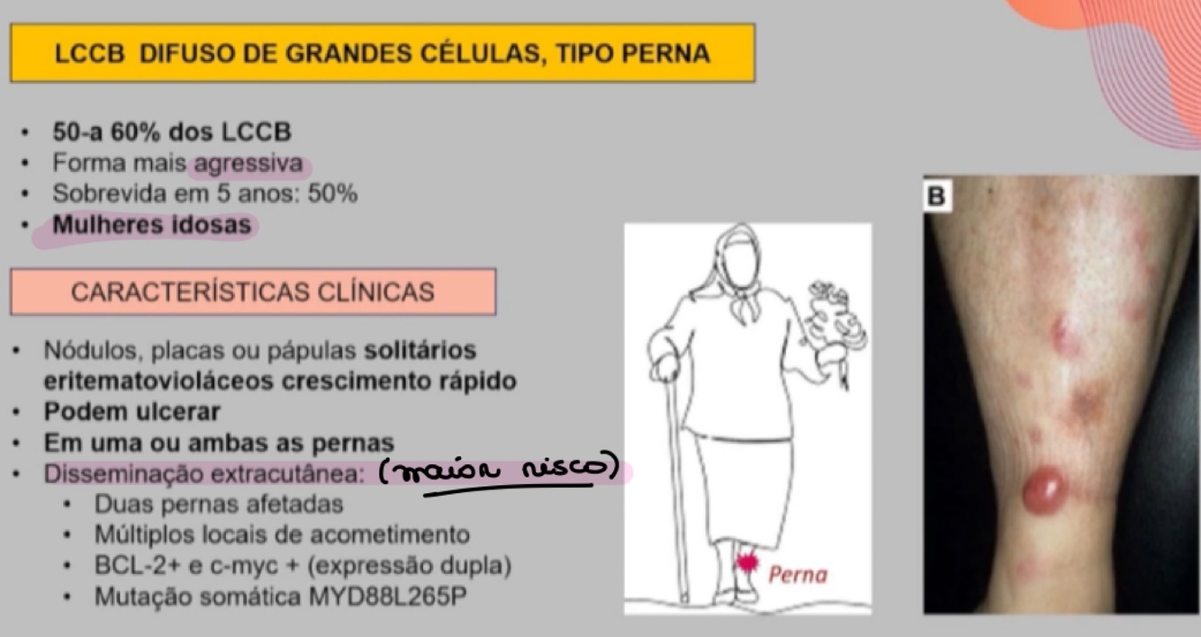 Quais marcadores são encontrados no LCCB difuso de grandes células tipo perna?