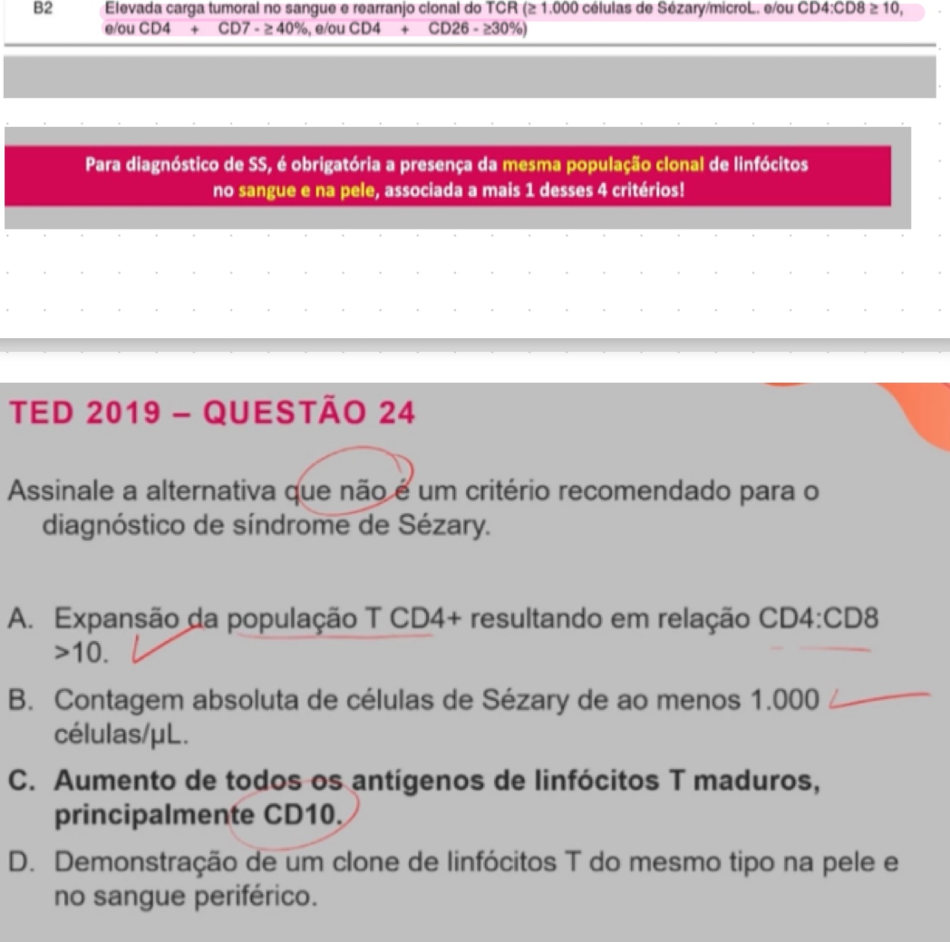 Qual valor da contagem absoluta do número de células de Sezary faz parte dos critérios diagnósticos?