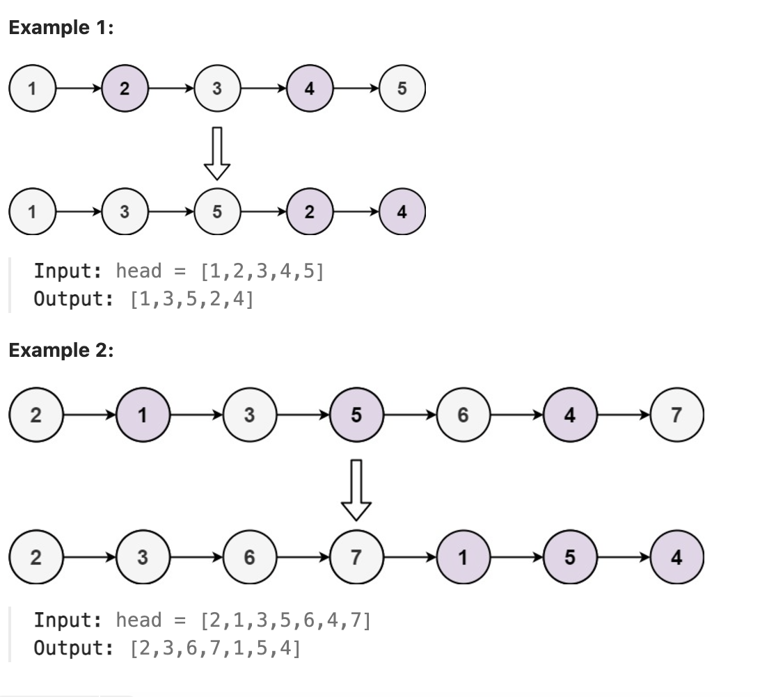 Returning the Result: Finally, the method returns odd.next, which points to the first real node in the odd list, effectively skipping the odd dummy head. This is the new head of the rearranged list where all odd-positioned nodes are followed by all even-positioned nodes.