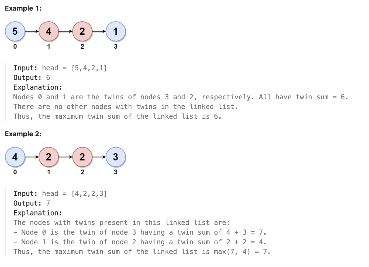 - The list is traversed using the two-pointer technique where fast moves twice as fast as slow. For every move fast makes two steps (if possible), slow makes one step.